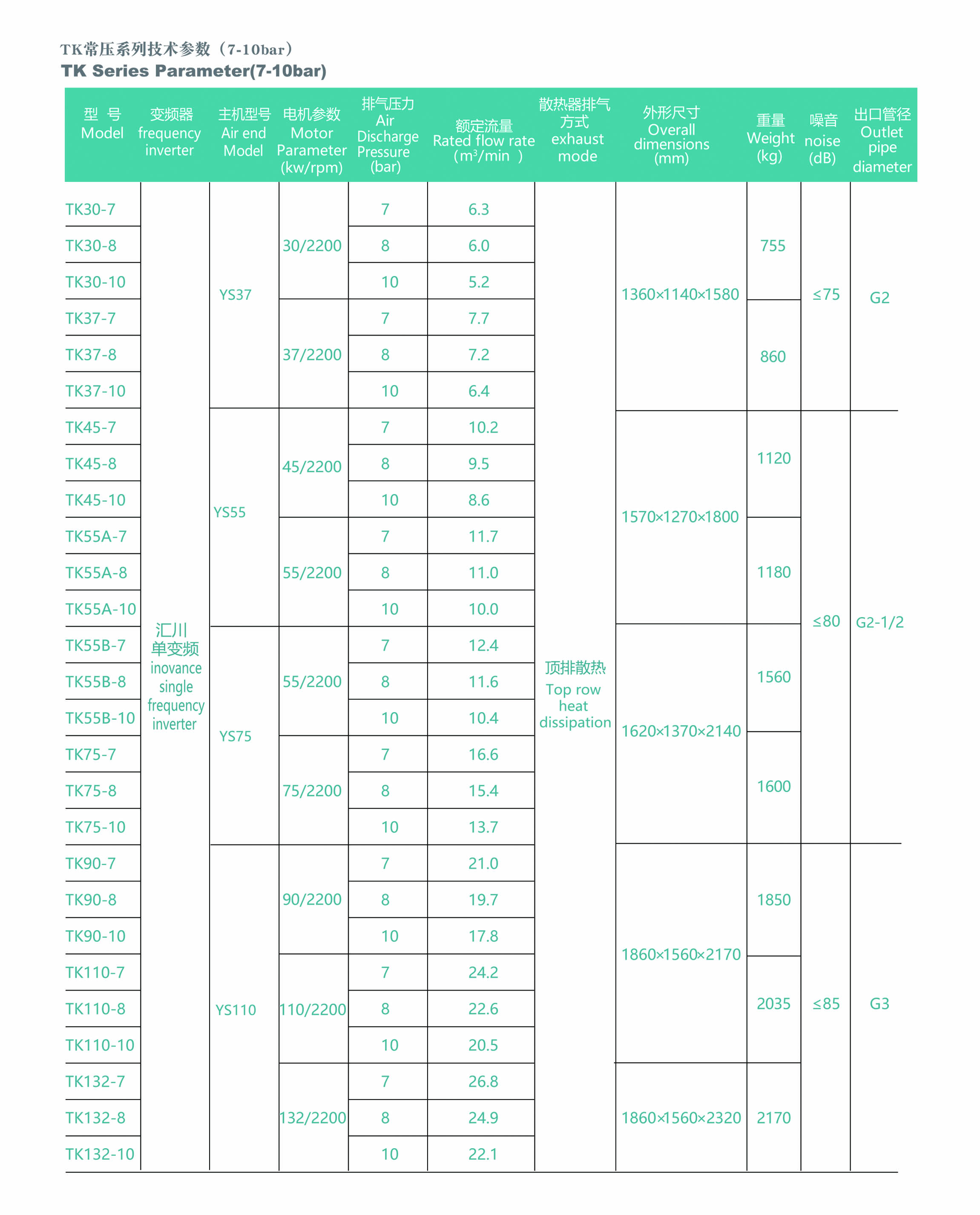 注:機組實(shí)際出風(fēng)量根據ISO1217,在20 C環(huán)境溫度以及最高工作壓力下的實(shí)測值。